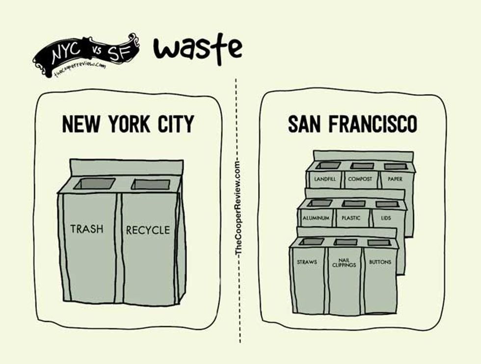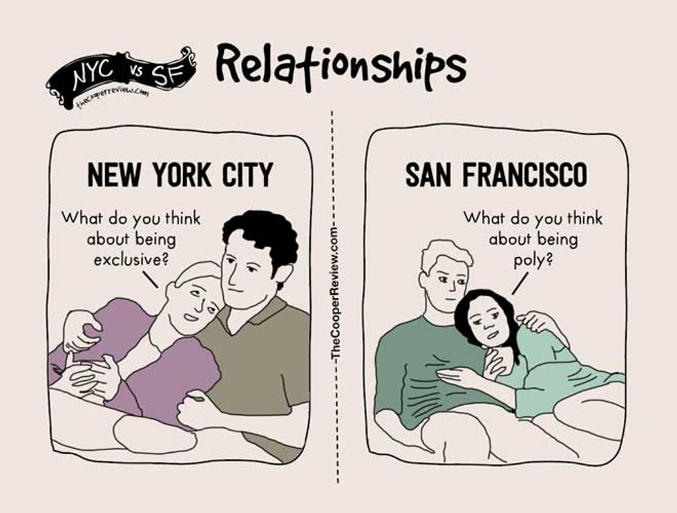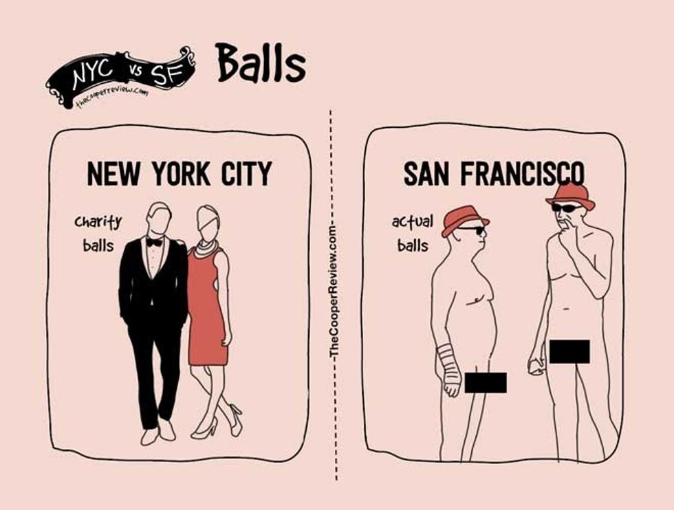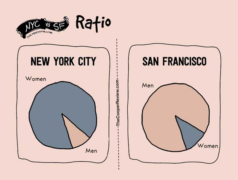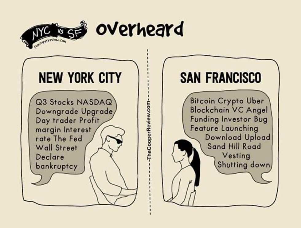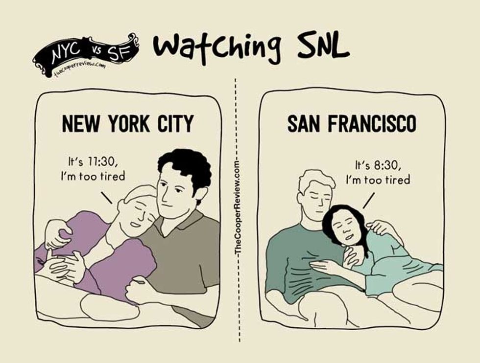 Comedian, author, blogger, and 2017 Hot 20 honoree Sarah Cooper has just released a new installment of her comic series that compares-slash-brilliantly-rips-on life in San Francisco and New York City. And there's a reason that this afore-linked article was 7x7's most-read story of 2017: The cartoons are hilarious AF.