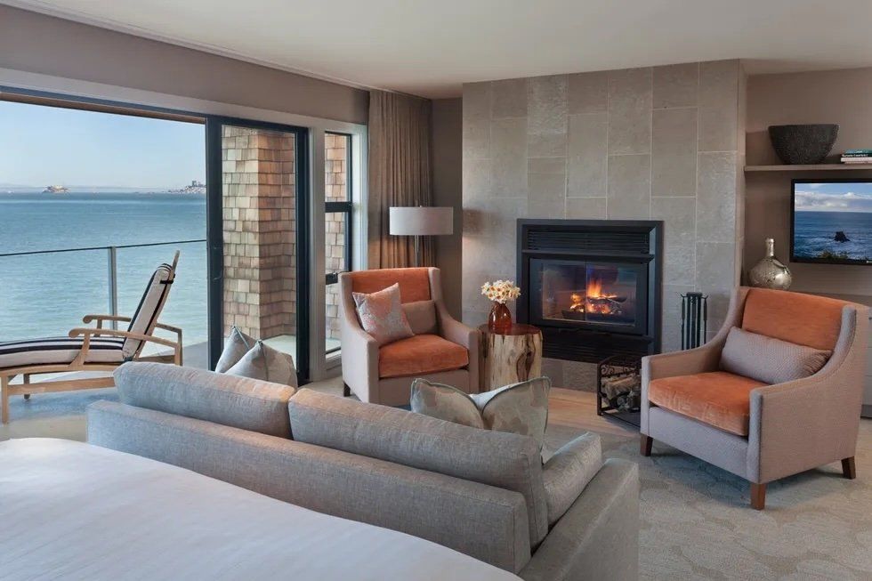 An ocean view suite at Inn Above Tide in Sausalito.
