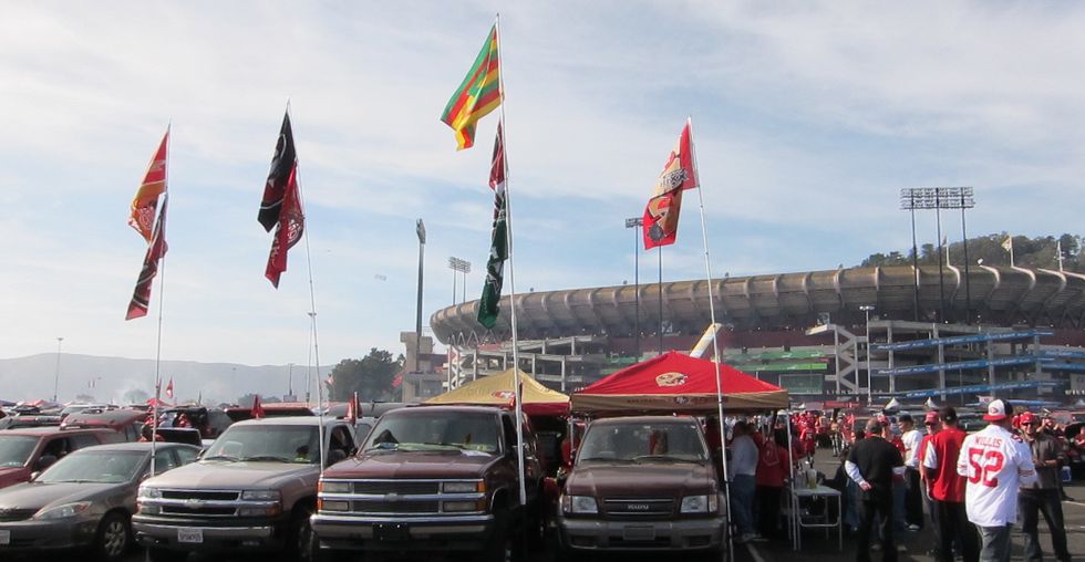 The tailgating scene at Candlestick Park has endured some less-than-stellar press this year, but it was all good vibes and touchdown dances in the parking lot and inside the stadium Sunday afternoon, when the soaring 49ers beat the New York Giants 27-20.