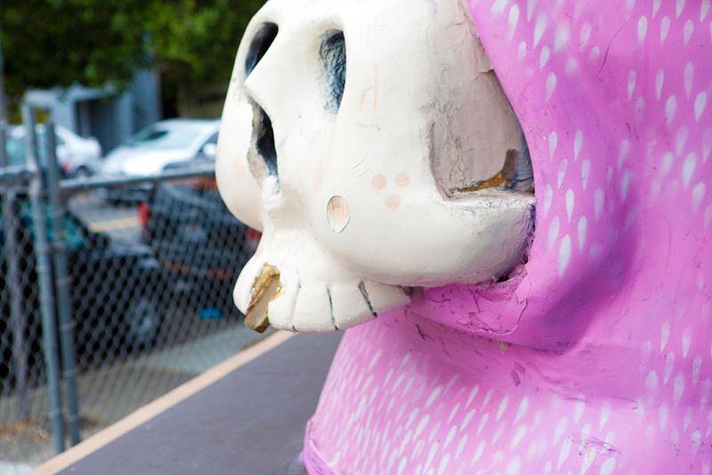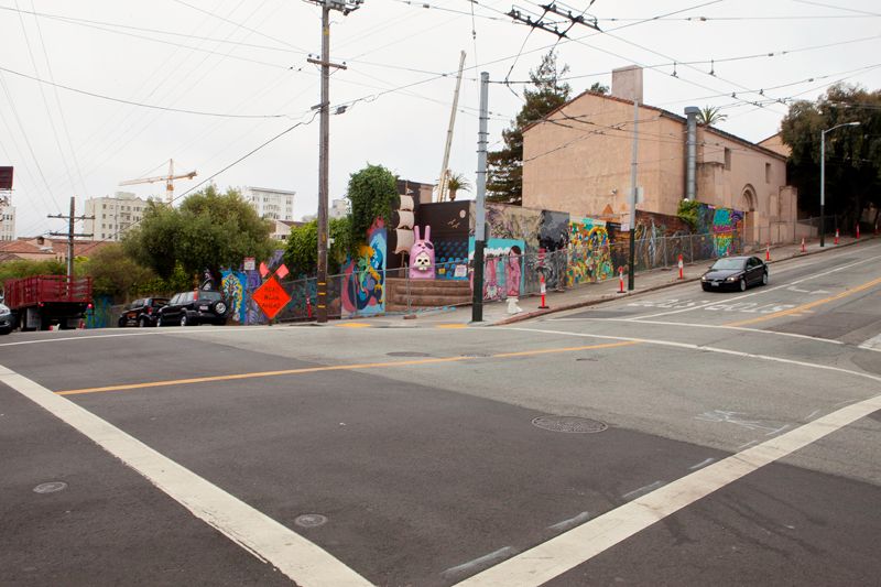 When we learned that one of the great pieces of public art in the Lower Haight would soon come down, we rushed over to the 'hood to say our final goodbyes. The wall at Haight and Laguna streets, mainly known for its seven-foot statue "Silly Pink Bunny" by local artist Jeremy Fish, will be removed the second week of September, so it's time for you to bid it adieu.