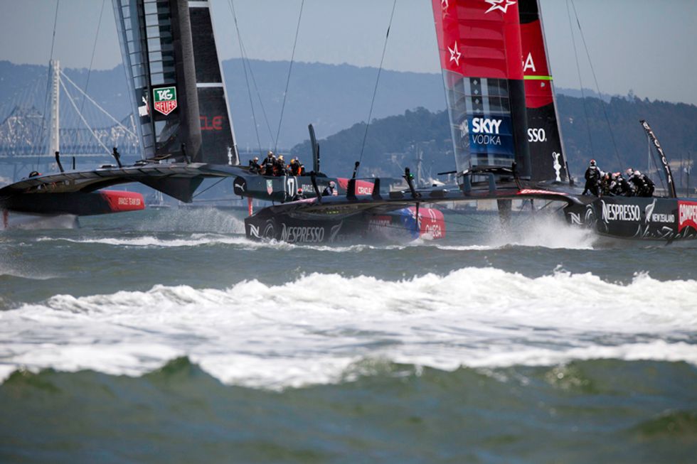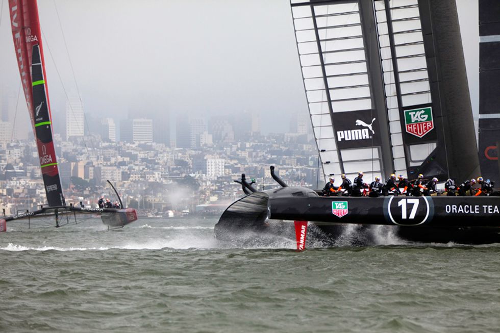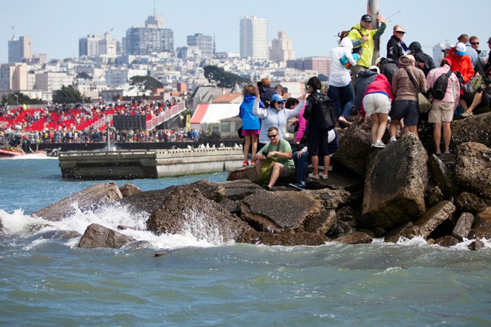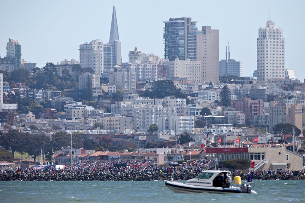 As the America's Cup duel between Oracle team USA and Emirates team New Zealand continues, we headed out for one last day on the water to bring you pics of the fastest catamaran sailboats in the world, fans clinging to the seashore, and fog clinging to San Francisco. Enjoy the photos and if you haven't already, get down to the shoreline to see some of the America's Cup action!