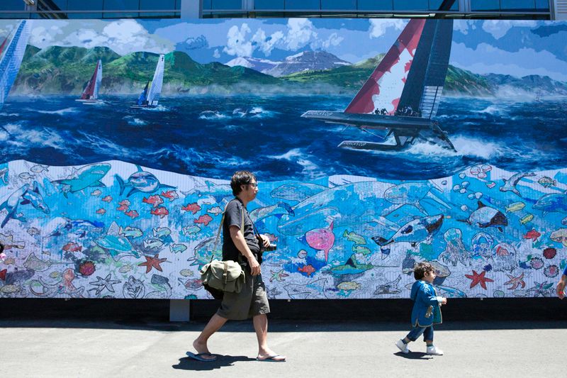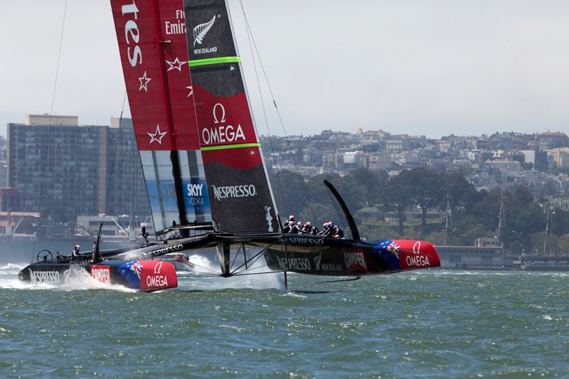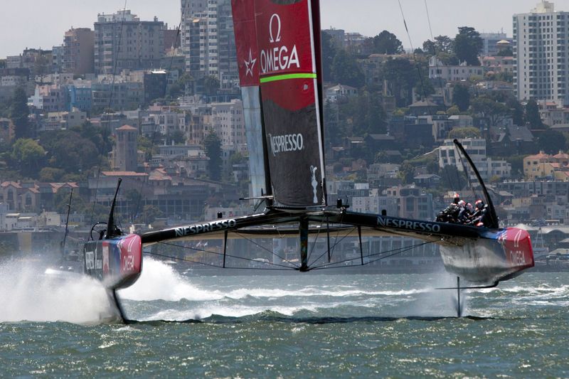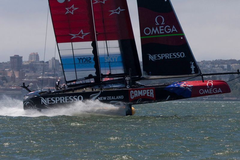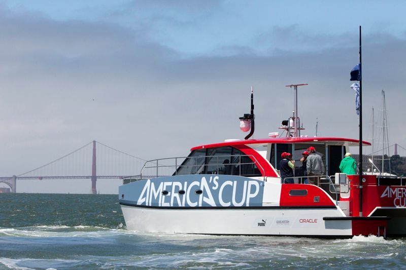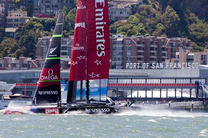 Despite the lack of competition, it was a thrilling and beautiful day to be out watching the first day of the America's Cup sailing, with Emirates Team New Zealand reaching almost 50 mph on the water. The Luna Rossa Challenge team sat out Sunday's opener due to a rule dispute, so Emirates Team New Zealand sailed alone, picking up the first point.