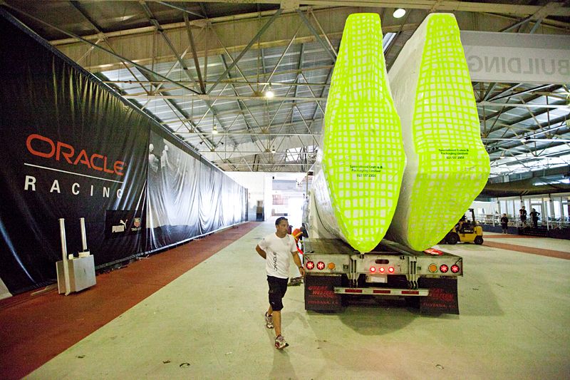 With the arrival of several key parts of their new AC 72 (America's Cup 72-foot sail), Oracle is practicing in San Francisco Bay. We went behind the scenes at Oracle's giant Pier 80 complex to catch the latest America's Cup action happening in our backyard.