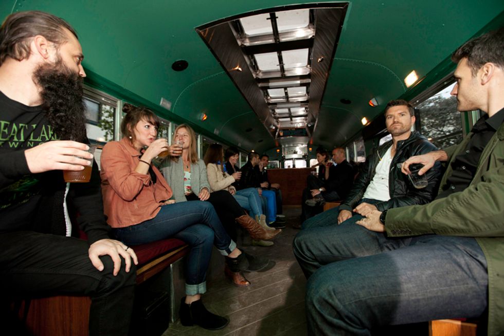 Think of your childhood school bus with all the seats ripped out and replaced with padded bench seats, a skylight above, mood lighting, music, and kegs of beer in the back. Oh, and we forgot to mention the driver will take you just about anywhere you want to go. Are you sold? Well, you should be. With a setup of six varieties of beer, the 40-foot custom bus and seating for 24 is perfect for joyriding with your friends.