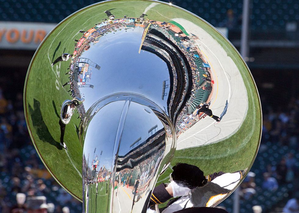 This for week's Scenes of the City we hung out inside and outside of AT&T Park for a couple odd events. One was the aforementioned Cal Bears football team playing in the park (they will be playing most of their home games there because of renovations to their home field). The other is the first-ever water polo match in McCovey Cove. As part of effort to garner support for their sport, the UC Berkeley Alumni Water Polo team vs. The Olympic Club Water Polo team played a match in the somewhat frigid waters of the bay.