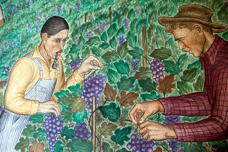 27 fresco murals line the inner walls