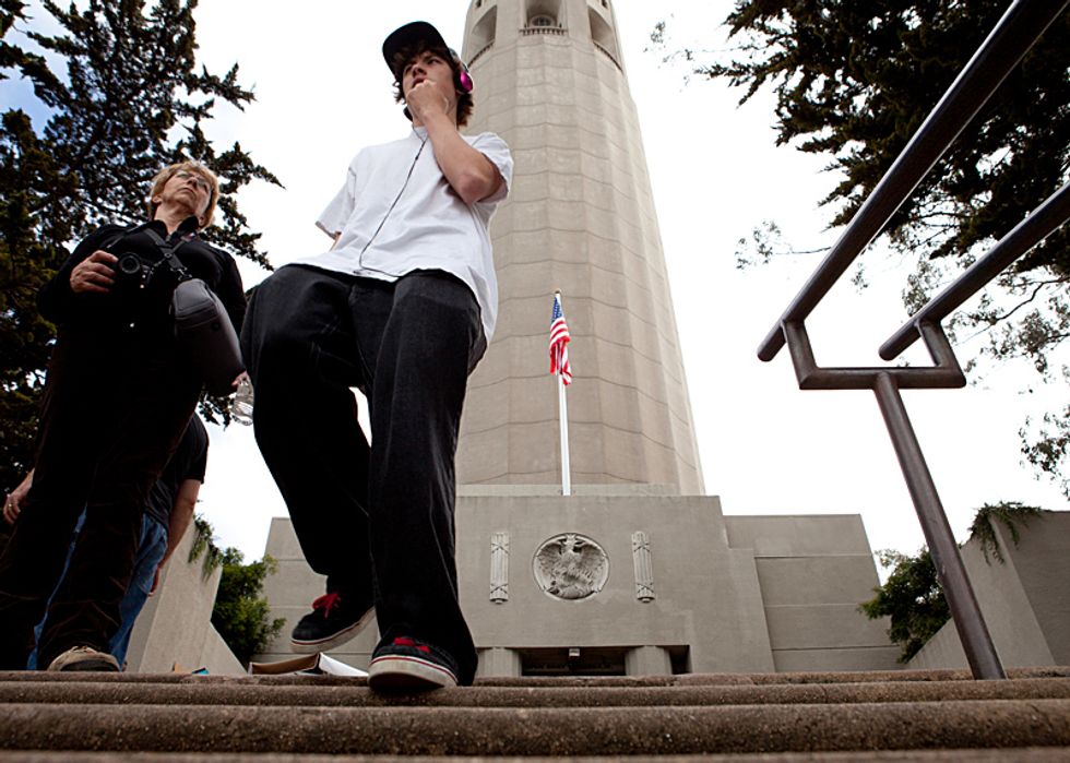 The 210-foot iconic tower stands as a beacon in the northern end of the city, something we pass everyday but many locals have never been in it or know much about it. The tower, which took five years to build, was funded with money left by local eccentric Lillie Hitchcock Coit and bequeathed to San Francisco in 1933. Something to check out for art lovers is the 27 fresco murals inside the tower. We checked out the tower and its surroundings to bring you a slideshow.