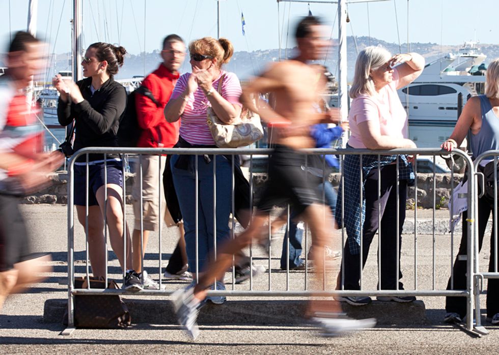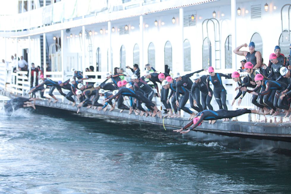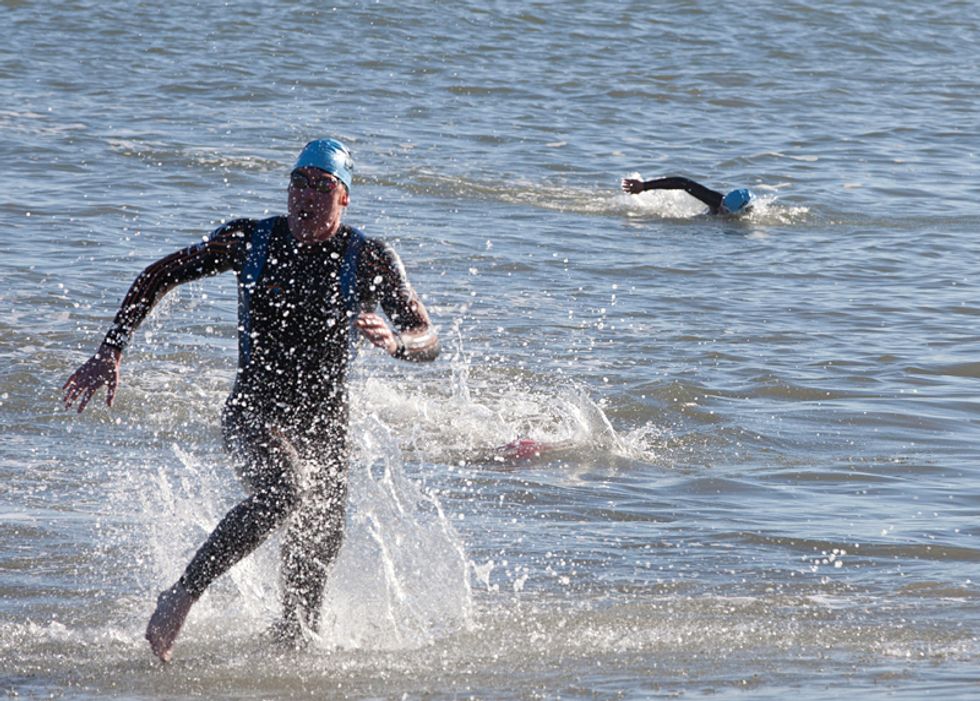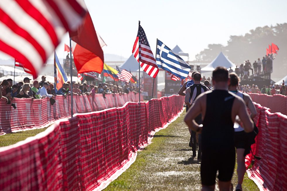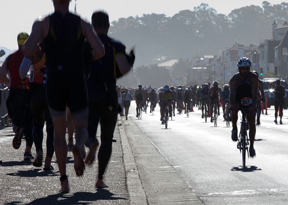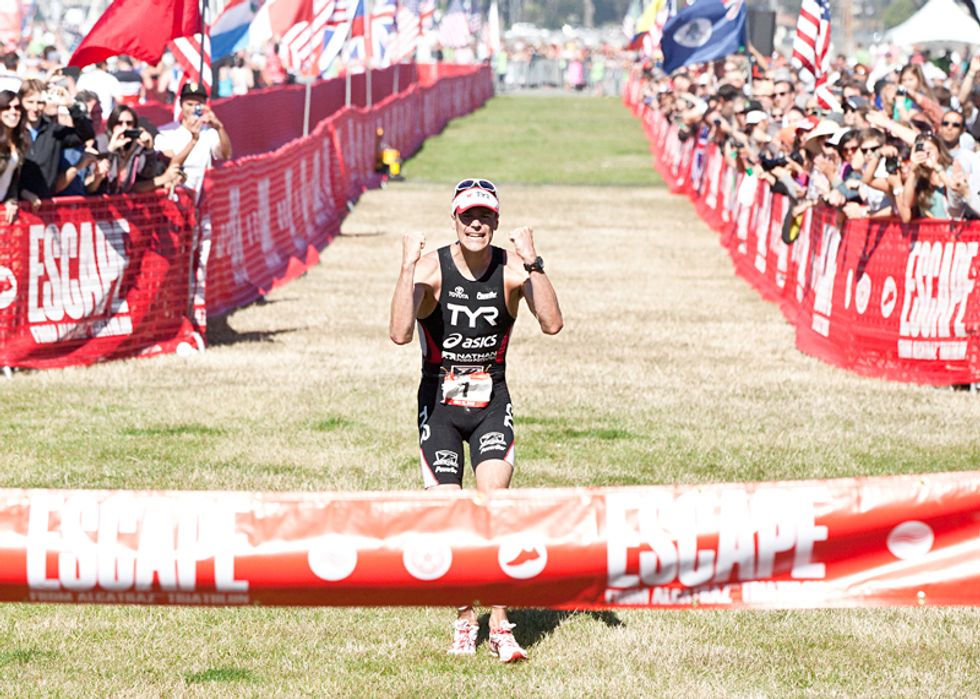Beautiful, sunny weather shone upon the 2,000 amateur and professional athletes who braved the 1.5 mile swim from Alcatraz to the Marina Green. From the Marina, they took an 18-mile bike ride through hilly SF and finished it off with an 8-mile run that included the famous sand ladder at Baker Beach. Andy Potts of Colorado Springs won today for the 5th time setting a course record for the most ever won by a male. Leanda Cave won for the women.