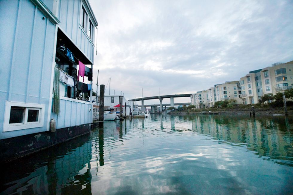 The small community of Mission Creek houseboats has been moored on the edge of the city since 1960, when it was relocated from Islais Creek further south to make way for merchant ship trading. Its inhabitants live just under Highway 280 with the sprawling UCSF Mission Bay campus to the south, and the Mission Creek condo developments to the north.