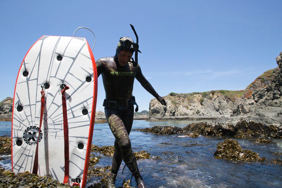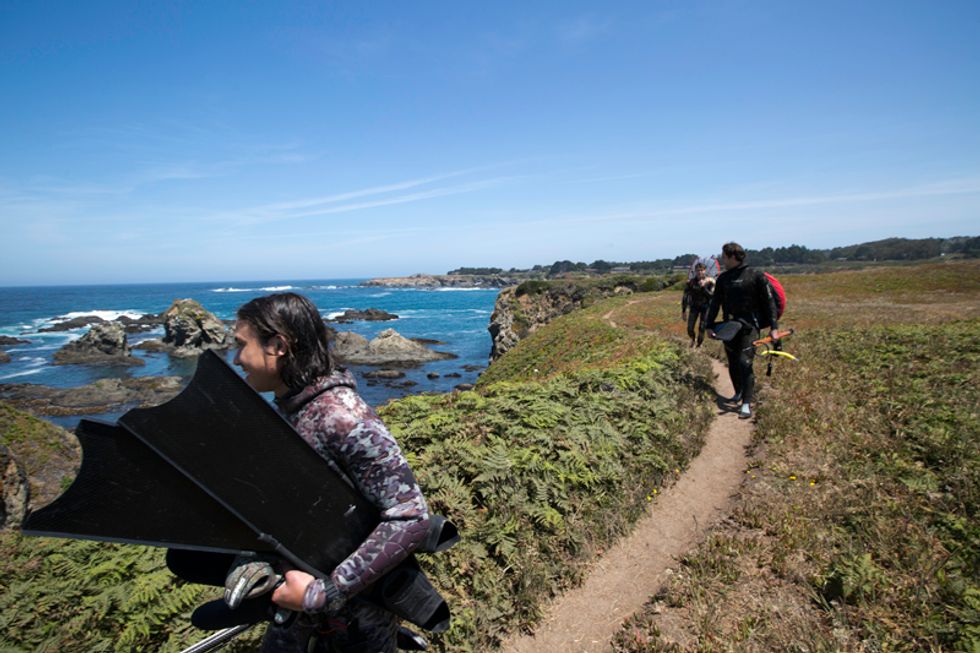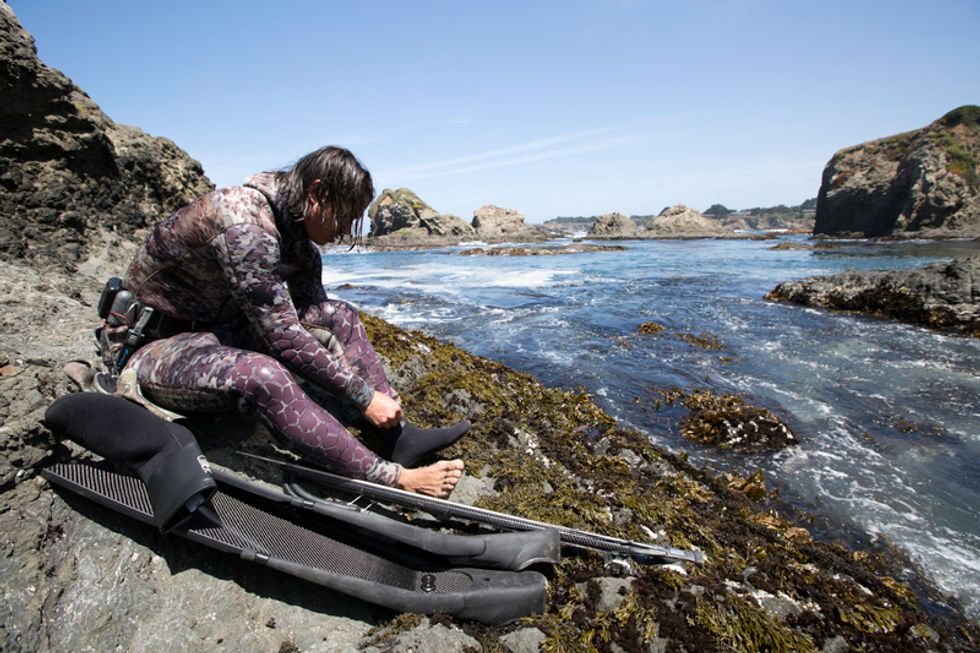 But before you can start a print, you have to get yourself a fish – and not just any fish will do. We headed up to the waters around Fort Bragg and after a day of free diving with spear guns, and plently of other specialized gear, the crew came back with huge abalone and blue rockfish