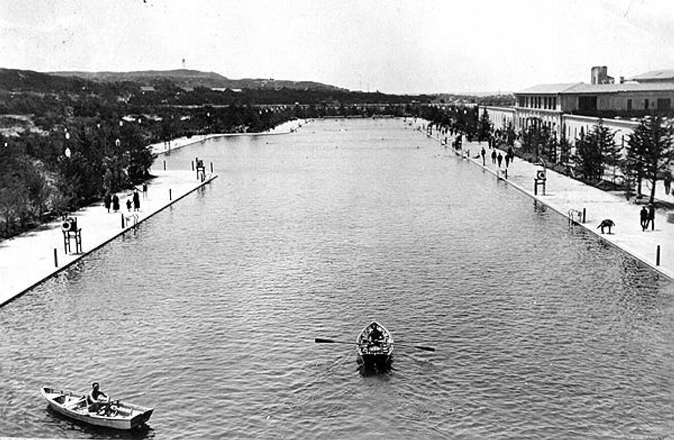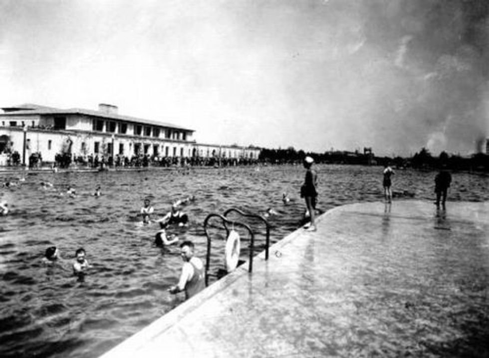 Fleishhacker Pool, taken in 1925, courtesy of a private collector (note the Pool House in the background left).