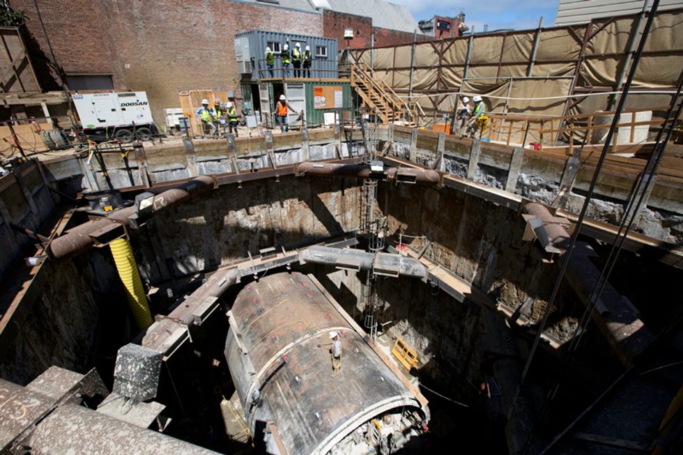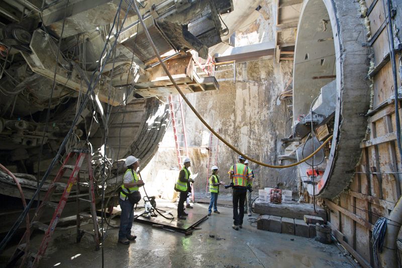 Covering 40 feet per day, the machines have completed the 1.5 mile of tunnel from 4th and Brannan to the North Beach location on Powell Street. The Central Subway is expected to open to the public in 2019. Three stations will serve the line in Chinatown, Union Square, and Moscone Center as well as a surface station at 4th and Brannan.