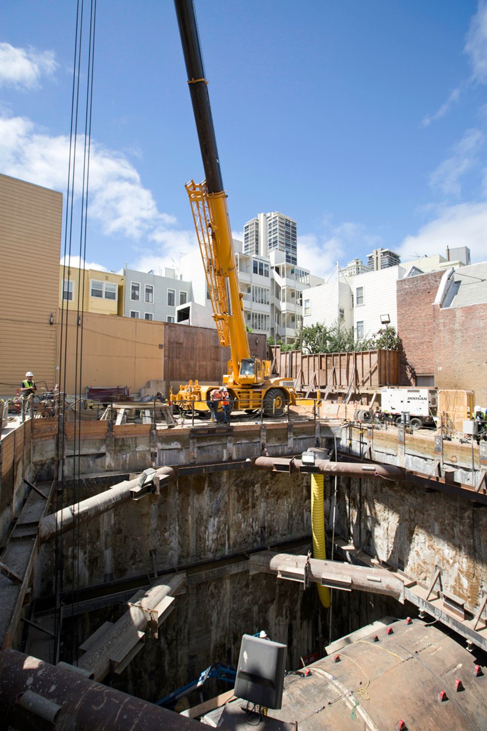 For this week's Scenes of the City we caught up with the SFMTA Central Subway Project to bring you an update from the other end of the tunnel in North Beach. Both Big Alma and Mom Chung (the tunnel boring machines digging under SF to connect the Central Subway Project) are currently being disassembled at the retrieval shaft in North Beach.