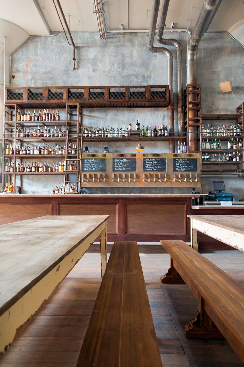 The 11,000 square-feet space features a 30-barrel setup, which can yield about 5,000 barrels of beer a year. The interior of the BBQ-meets-Brewpub was designed by Kevin Landwehr and Devin Becker of the New York design firm Nothing Something, and features many different textures of repurposed metal and wood.