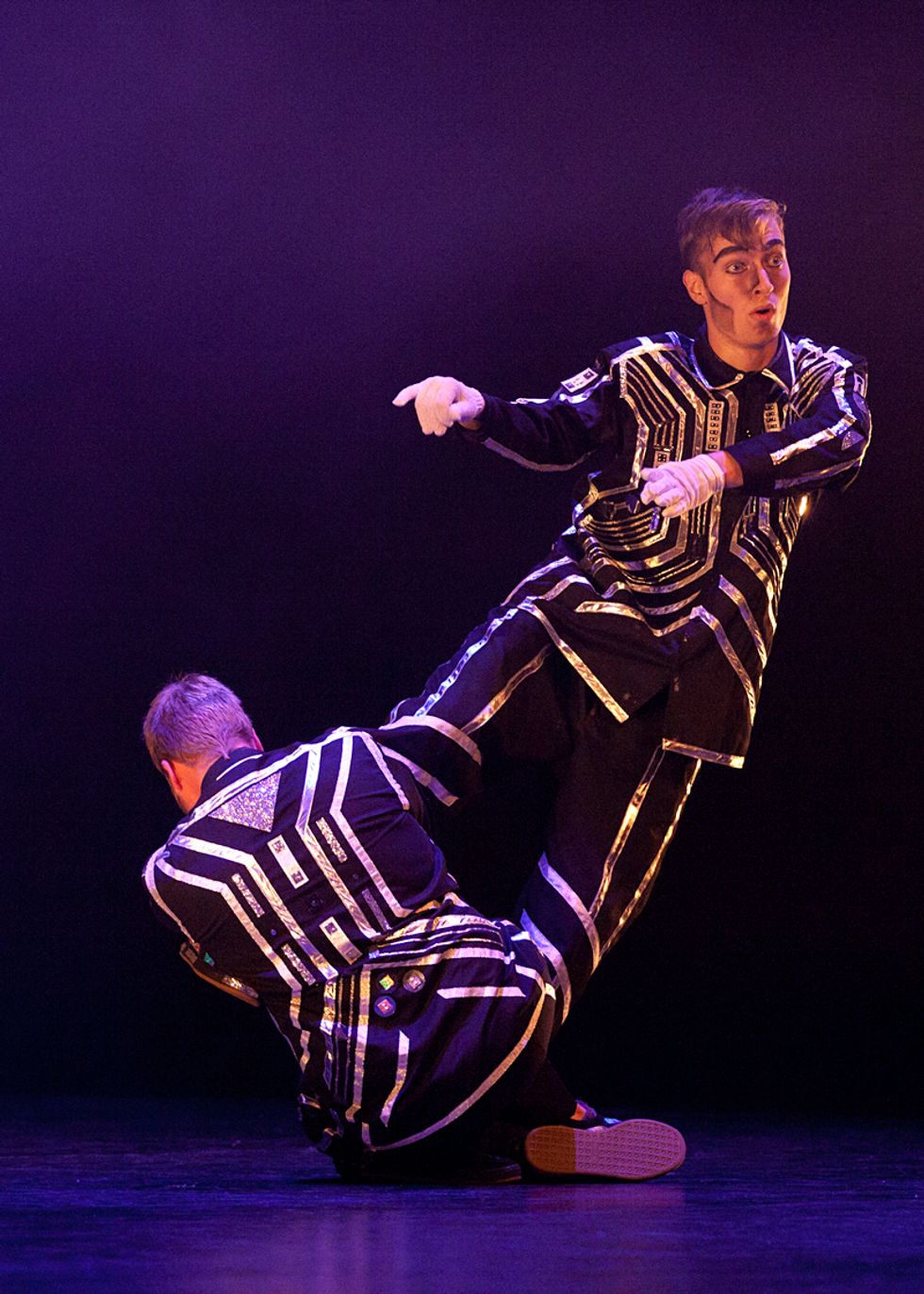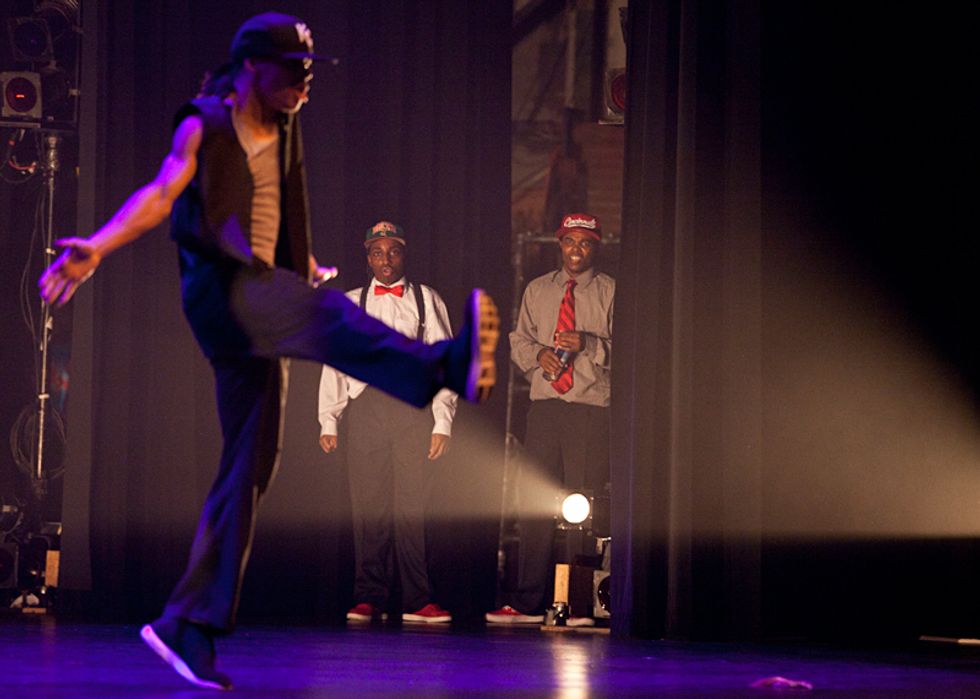 Footworkingz of Chicago perform "Down 2 Biz" with music by John Legend and Outkast, as two members of the group watch from backstage.