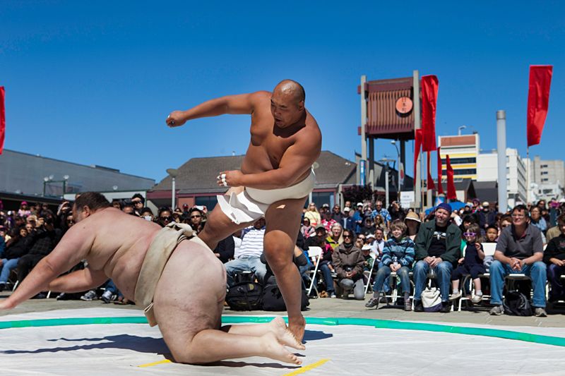 Crowds gasped and cheered as the almost 400-pound wrestlers moved around the ring with grace. Check out pics from the match.