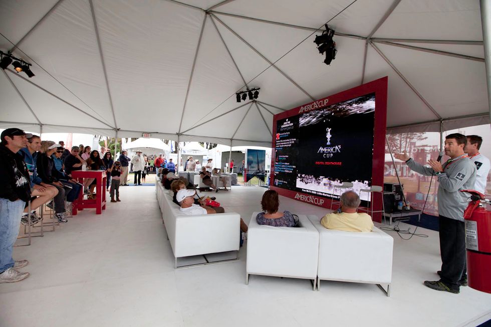 America's Cup kicked off in a thick pea soup of fog over the Bay. Spectators came out in droves and there was no shortage of action on the water. Back on land, the America's Cup Village showcased wine tasting, games for kids, live info sessions, and other concessions.