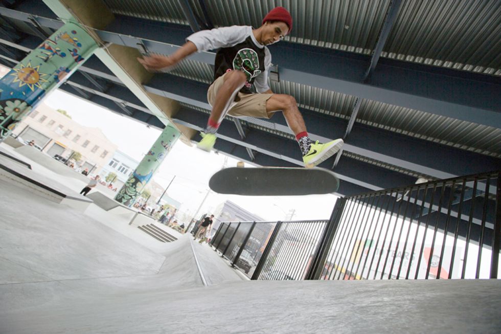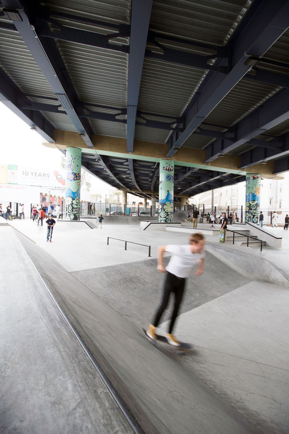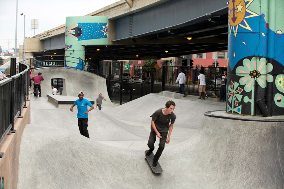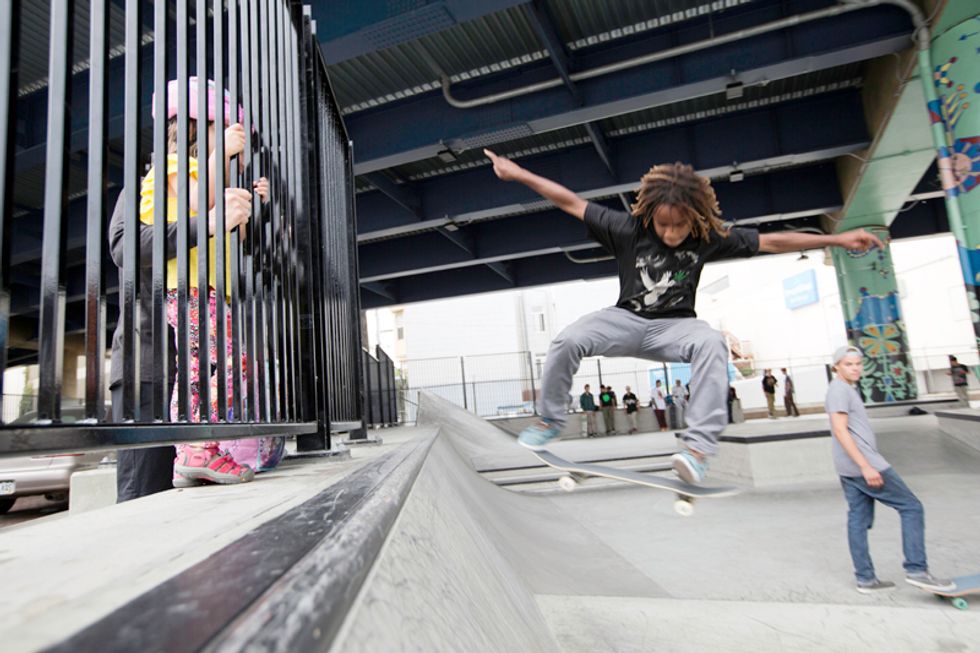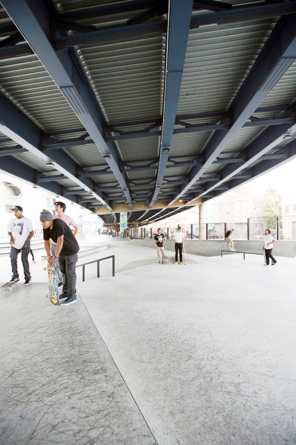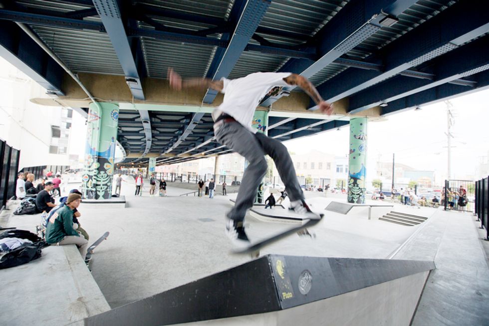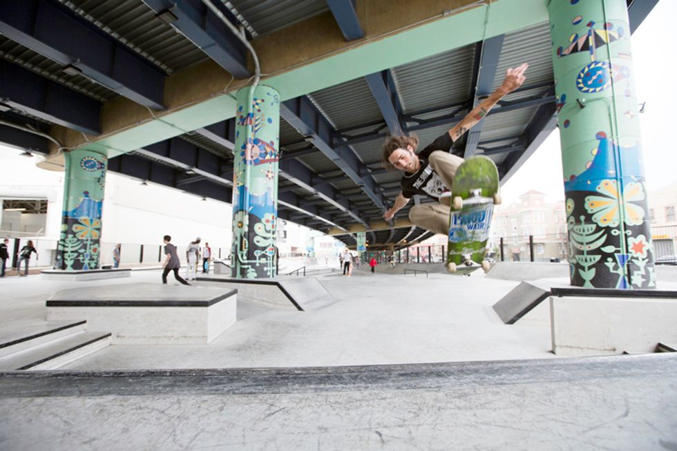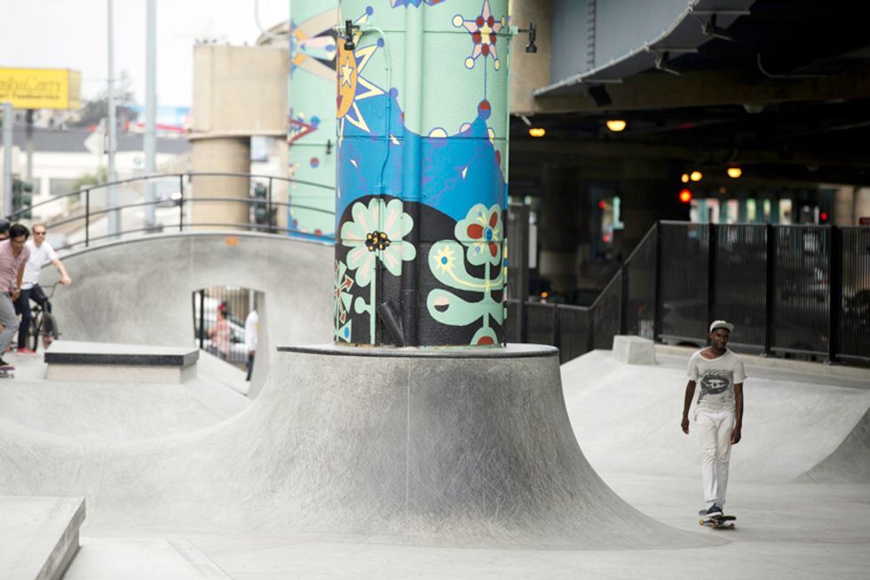 Plans for the new park have been underway since 2009, after $3.3 million funding and a deal with CalTrans (who owns the property). Tucked underneath the Central Freeway, between Valencia and Otis streets near Zeitgeist, the roar of traffic above and skate boards on concrete below merge. Adults, teenagers, and even younger kids fly around the park on their boards, BMX bikes, Razor scooters, and anything else on wheels. Check out the action for yourself here—but be careful to not get in the way.