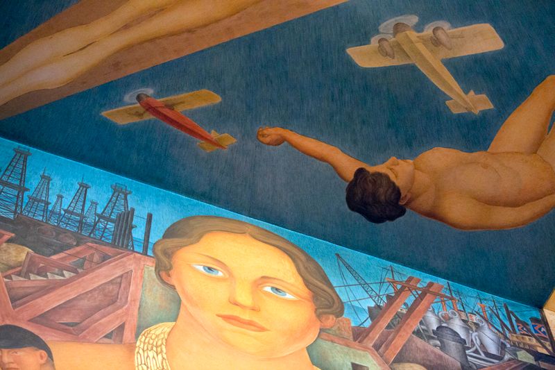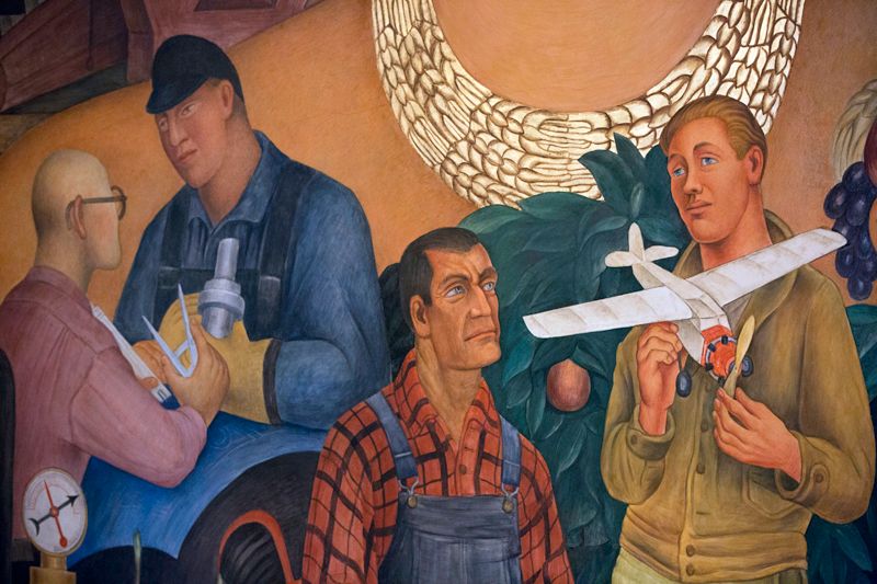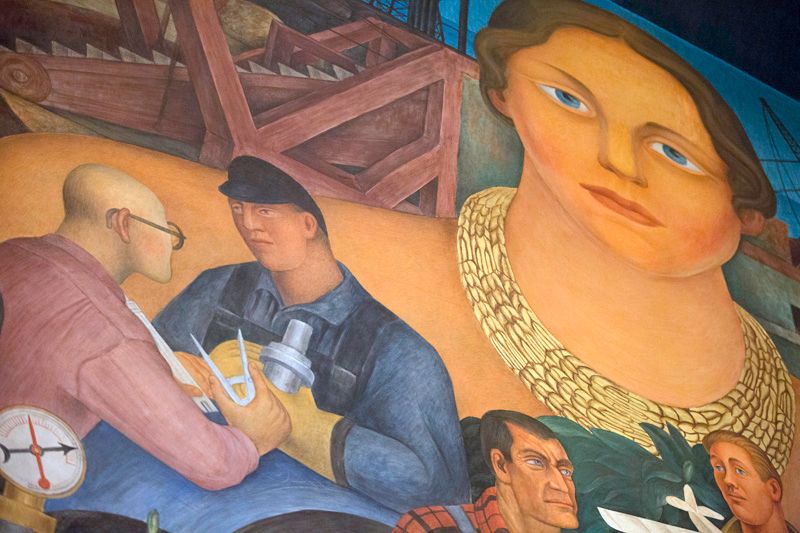 There are several portraits within the larger mural, including one of James Marshall, discoverer of gold, and another of Luther Burbank, the famed horticulturist who also captured the eye and paintbrush of Rivera's wife, Frida Kahlo. Additional figures and symbols represent the Bay Area's sectors of industry, including engineering, farming, oil, shipping, and ideas of youth and dreams.