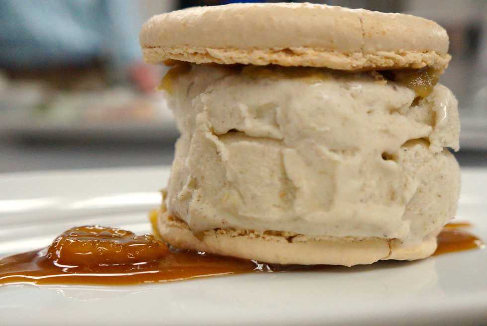 Caramel Macaron and Bananas Foster Ice Cream Sandwich