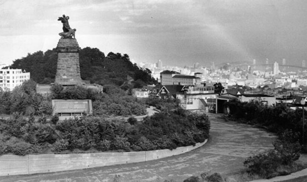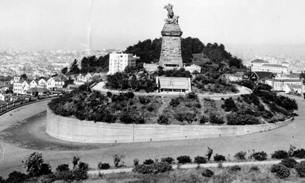 Today, Ashbury Heights is home to pricey real estate and great views, but the top of Mount Olympus wasn't always so residential. Considered the geographical heart of San Francisco, the hill was once home to a massive statue titled "Triumph of Light," from 1887 to the late 1950s.