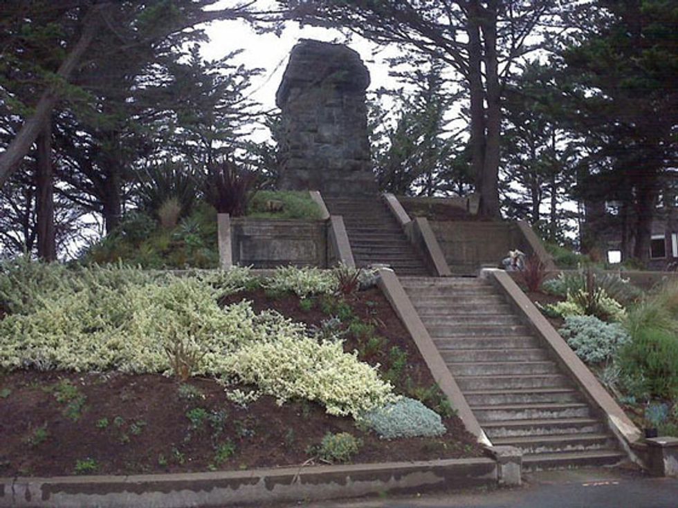 Today all that remains is a raised, wooded circle surrounding the remains of the monument's base located where Upper Terrace dead ends. Although the panoramic views are now obstructed by buildings and trees, it is still a spectacular site to behold both the east and west sides of the city, with significantly less foot traffic than Twin Peaks. Happy exploring!