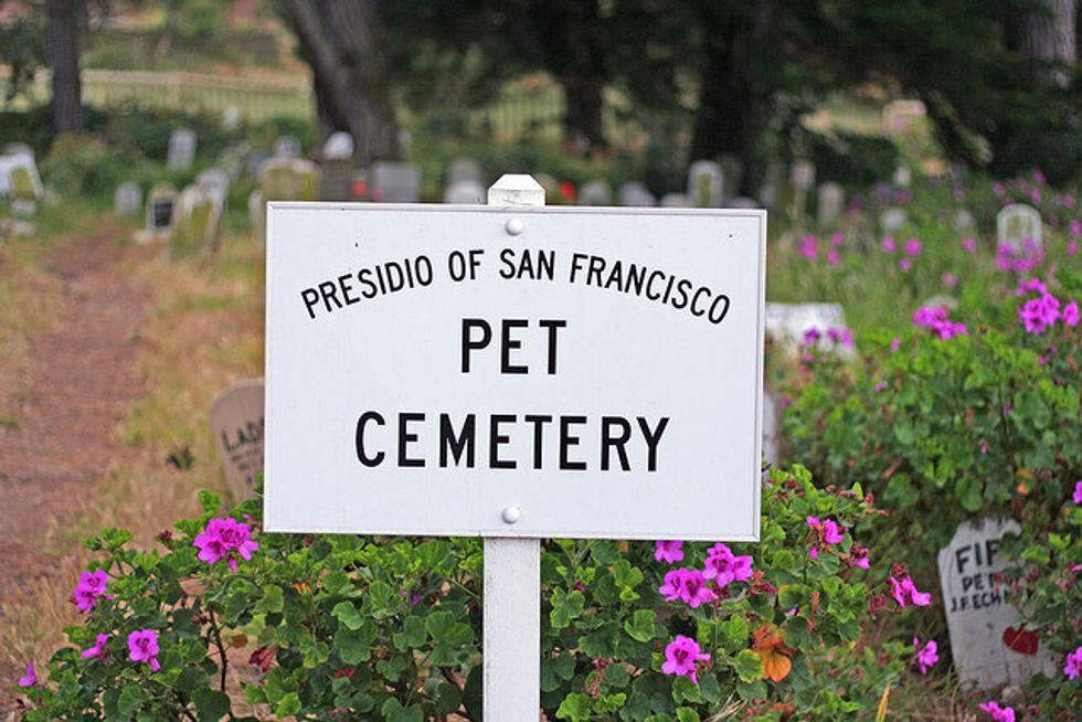 By most accounts, the Presidio Pet Cemetery wasn't ever "official" (although it may have started as the final resting place for cavalry horses or military guard dogs), but from the 1950s onward, residents of the Presidio brought their beloved pets, along with touching handmade tombstones, to be buried at McDowell Avenue at Cowles Street.
