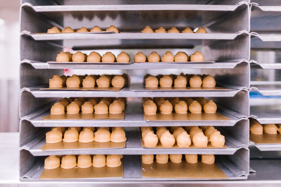 Following that moment of bliss I am jaundiced when I hear that each morning, they will taste whatever is running on the line to check that the candy is immaculate. A 9am meeting with the extended team is set to check every candy they ran the day before to make sure the all the specs of the chocolate are spot on, including the taste and amount of shine, etc. Apparently, it takes 24 hours to balance the structure of the chocolate, and if you bite it before it's ready you'll miss the satisfying snap. Another key factor is the chocolate encapsulating the candy center in full. If there's a hole, moisture can seep out, or vice versa for the truffle to get soft or even moldy. It's a precarious process, especially when they use all natural ingredients and no preservatives.