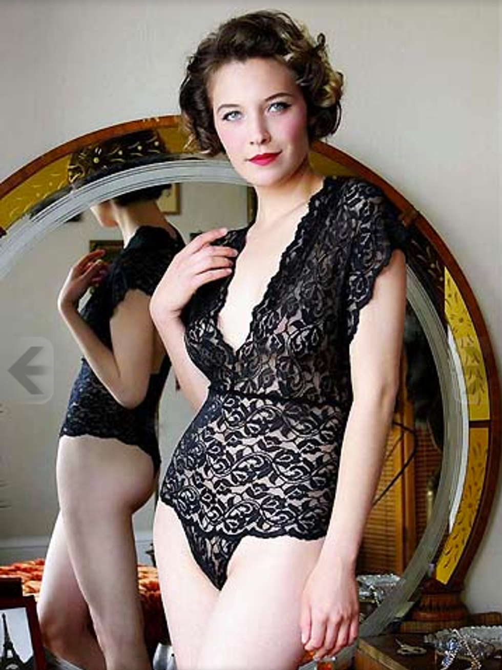 7. Dollhouse Bettie Stella Amoris Black Lace Teddy, $73