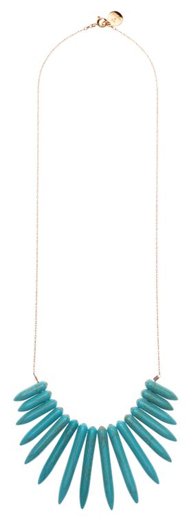 6. Viv & Ingrid 20" Gold Necklace with Turquoise Spikes, $125