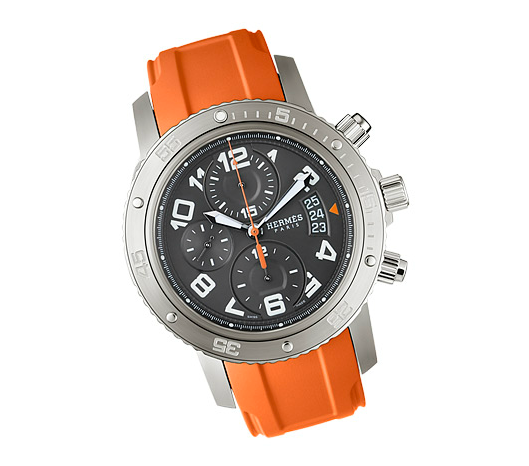 4. Hermes Clipper Chrono Plongee Stainless Steel and Rubber Diver Watch, $3,800