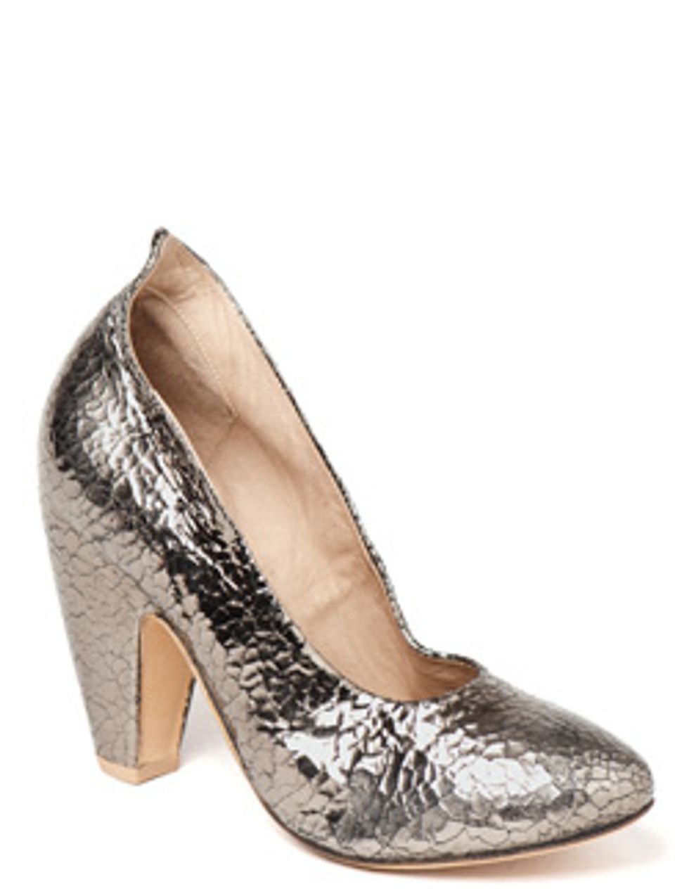 7. Elisa Nero Metallic Textured Leather Pumps, $410