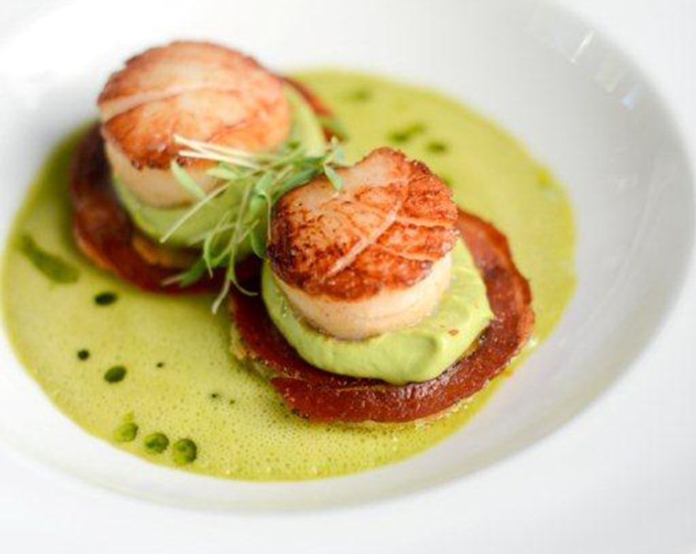 Chef Kelly McCown and sommelier Woody Van Horn from Goose and Gander in St. Helena, are pairing lemongrass-tinged Grgich Hills Estate Fumé Blanc with seared scallops. The long finish and bright flavors match nicely with the texture and flavors of scallops, especially the way they do it at Goose and Gander - with fried green tomatoes, pancetta, avocado puree, and cilantro jalapeno sauce.