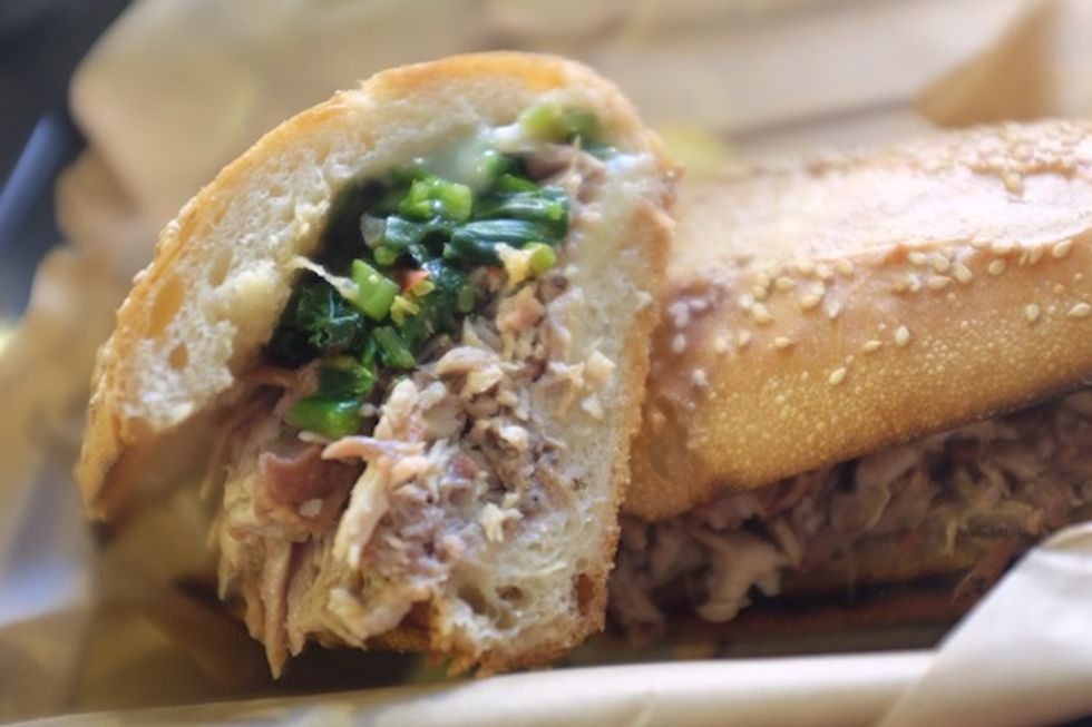 Conventional wisdom might have you thinking North Beach was the only place for an Italian style sub sandwich. Not so. At 1058 Hoagie Adam Mesnick of Deli Board fame offers a dozen or so cold sandwiches packed with thinly sliced meat, cheese, some with tangy sauces. Try one of his signature sandwiches, the #2 with porchetta, genoa salami, finocchiona salami, fresh mozzarella, dynamite olive salad, shum spread, and the works. Not a fan of garlic? Go for the #1 instead which always features aged provolone and cherry peppers.