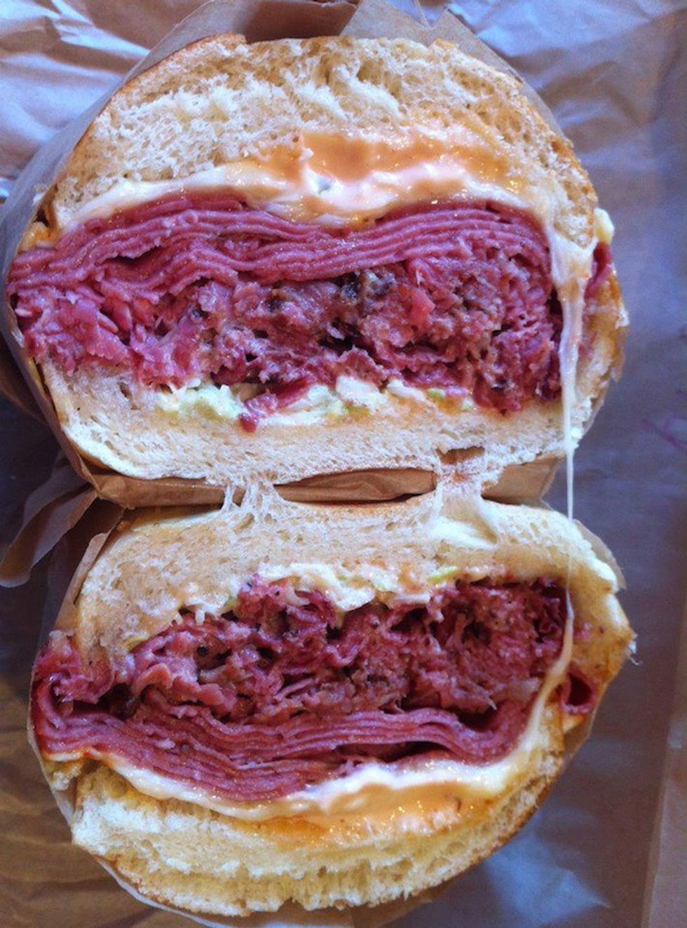 While many swoon over the corned beef, at Dennis Leary’s sandwich spot The Sentinel, try the cold Roast Beef sandwich. The beef is served very rare with smoked onions, frisee and horseradish cream cheese on a housemade seedy bun. It’s juicy, tender and positively addicting.