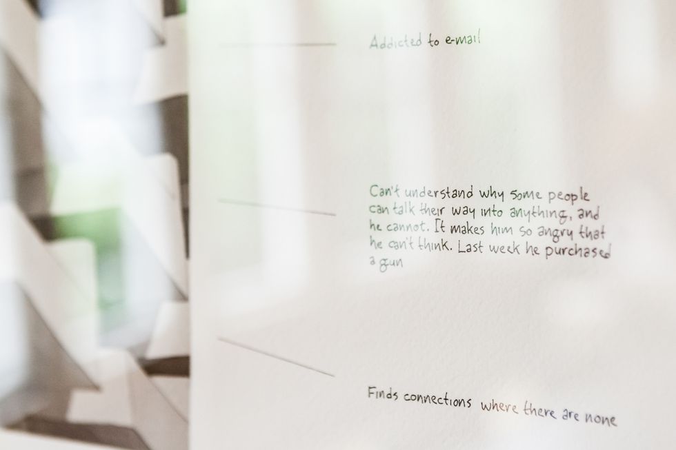 The collection mostly comprises local artists that belong to Artspan and take part in Open Studios. "I like to see the progress of the artists over the years. I like to see how their work has developed and changed," he says. This is one of the reasons why there are many recurring artists in the collection, including, Laura Hapka, Linda Yoshizawa and Kristina Quinones, who once gave him the shoes she wears while she paints. "I was at her studio with other people and she was carrying these heavy shoes covered in paint. She told us that she was going to throw them away because it was impossible to walk. I offered to buy one shoe because I saw on it all her hard work and I perceived it as part of her art collection. Another guy bought the other shoe."