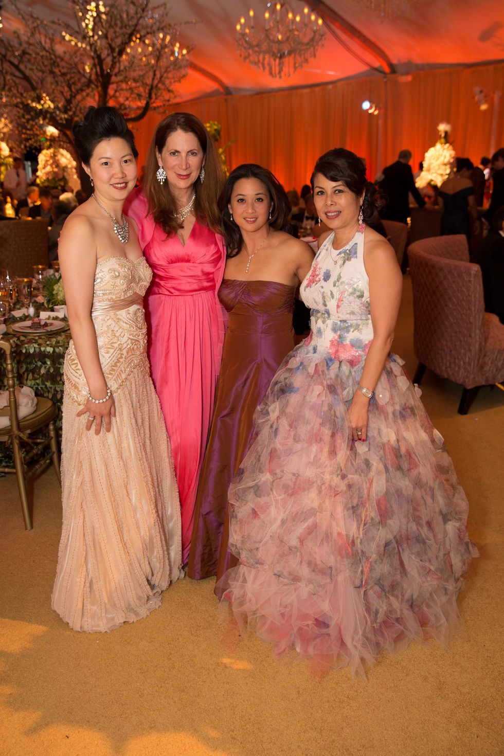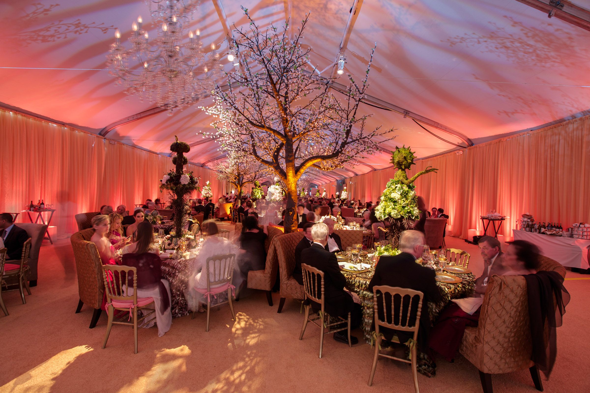 Presented by America's oldest professional ballet company, the black-tie gala opened with guests being greeted by a 20-foot fog wall depicting a whimsical, growing tree in a fairytale courtyard under a specially tented pavilion. The night included dinner and cocktails in the lobby of the War Memorial Opera House, and led into a spectacular main area furnished with plush textiles and gold finishes—a sumptuous eventscape designed by Riccardo Benavides.