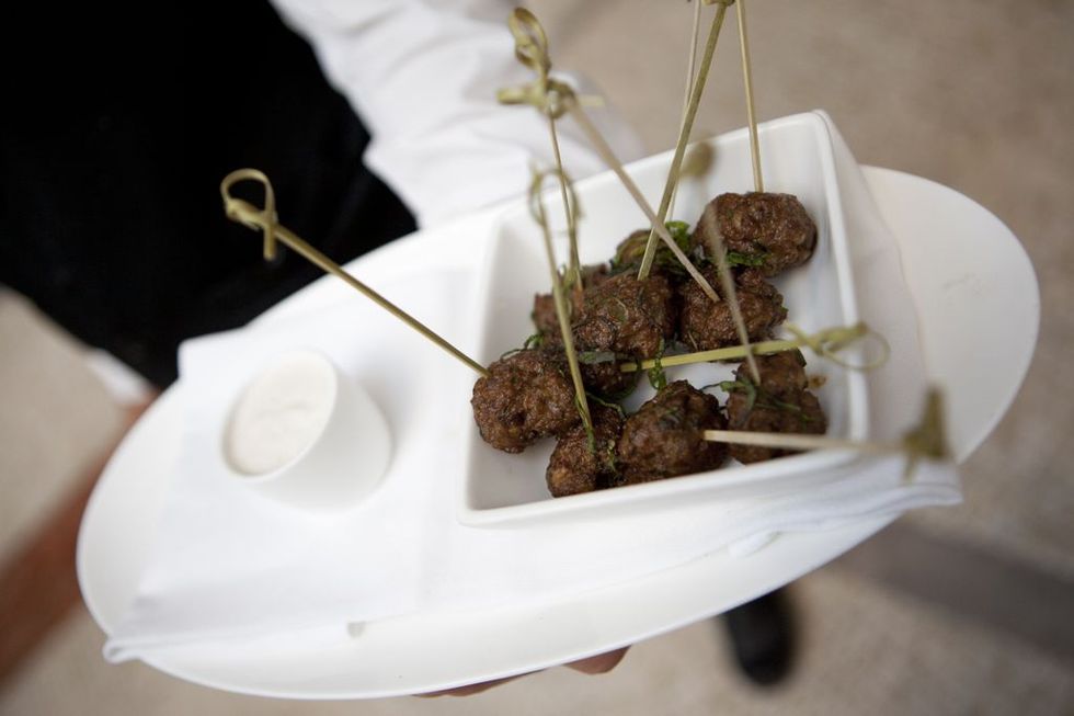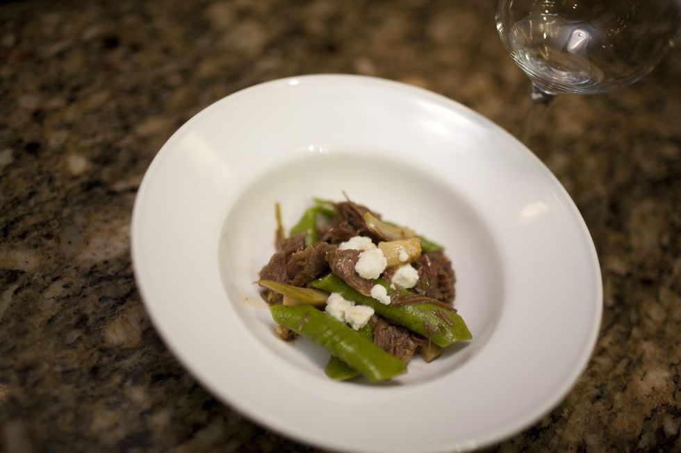 Dessert was a duo of One Market’s pastry chef Patti Dellamonica-Bauler's goat cheese ice cream sundae with candied pecans and spiced goat’s milk caramel, and Perbacco's goat’s milk jam-filled ricotta doughnuts.