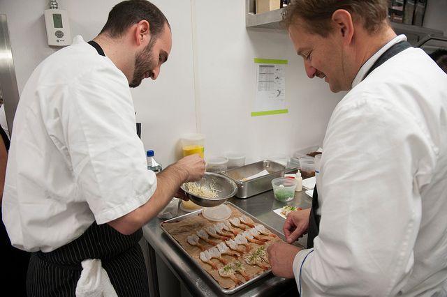 Each dinner featured elements from the three presenting sponsors: Campari, the National Pork Board, and Guittard Chocolate Company. A portion of the proceeds from each of the fall dinners benefited the American Red Cross Disaster Relief Fund for victims of Hurricane Sandy.