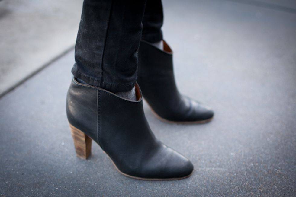 Nancy works as a freelance apparel and textile designer, and overall fashion expert. As you can see from her outfit, she has a keen eye for details -- I particularly like her use of textures, varied lengths and her nicely draped scarf.