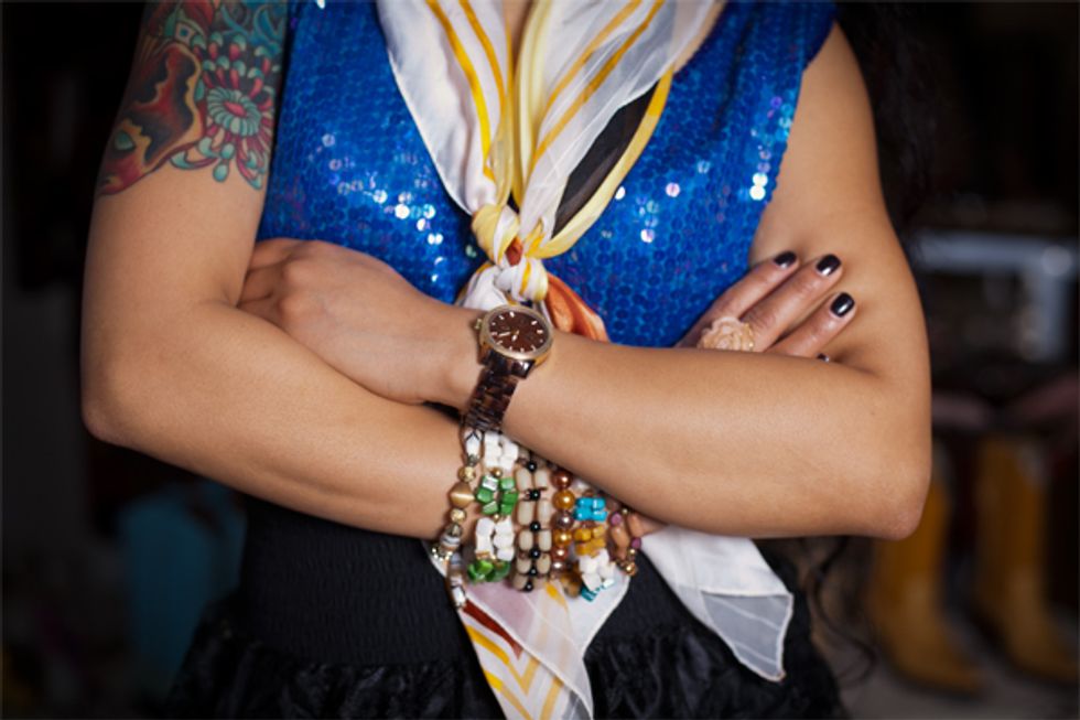 What she's wearing: Vintage clothing, bracelets, and ring from 31 RAX, Michael Kors watch, purchased from Nordstrom; Earrings from Forever 21, Steve Madden lace-up platform booties, purchased from Nordstrom.