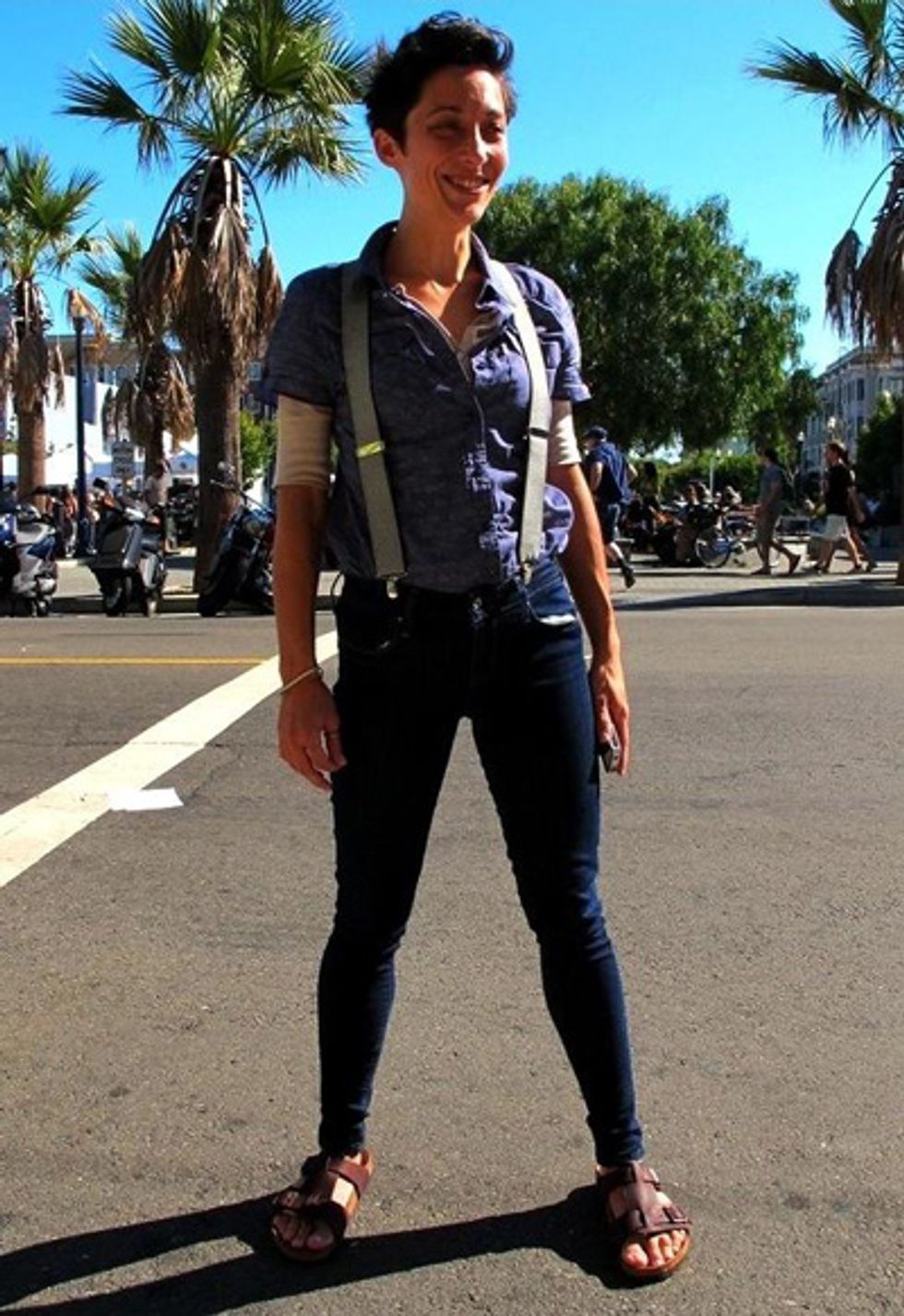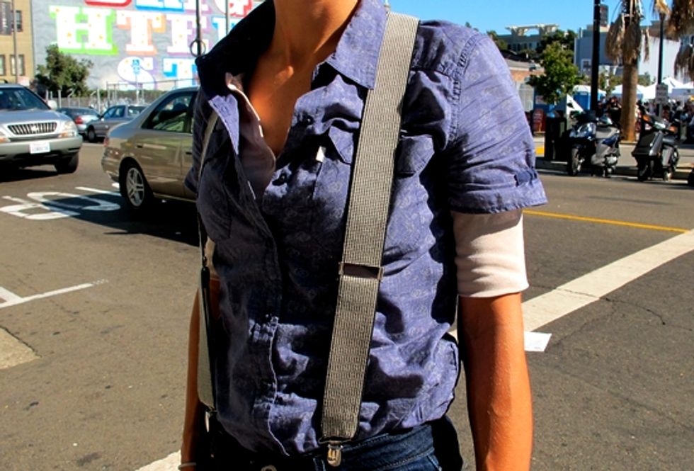I spotted Liz Jackson yesterday, first at Flipper's, then at CAPSULE in Hayes Valley. And, well, I'm pretty sure I have a girl crush. Liz was sporting this perfectly androgynous outfit and had the attitude and smile to really carry it off.