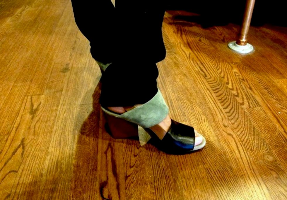 What she's wearing: Reversible top by vintage label, Jeanne-Marc of San Francisco; pants by Judi Rosen NYC; heels by Dries Van Noten, purchased from Gimme Shoes.