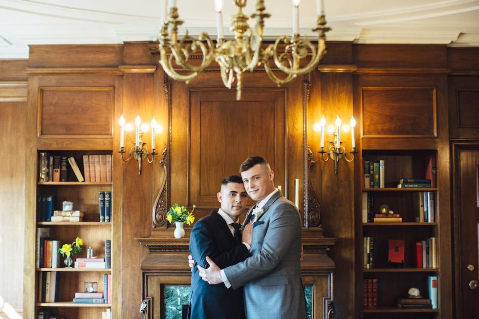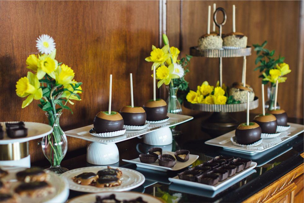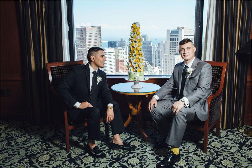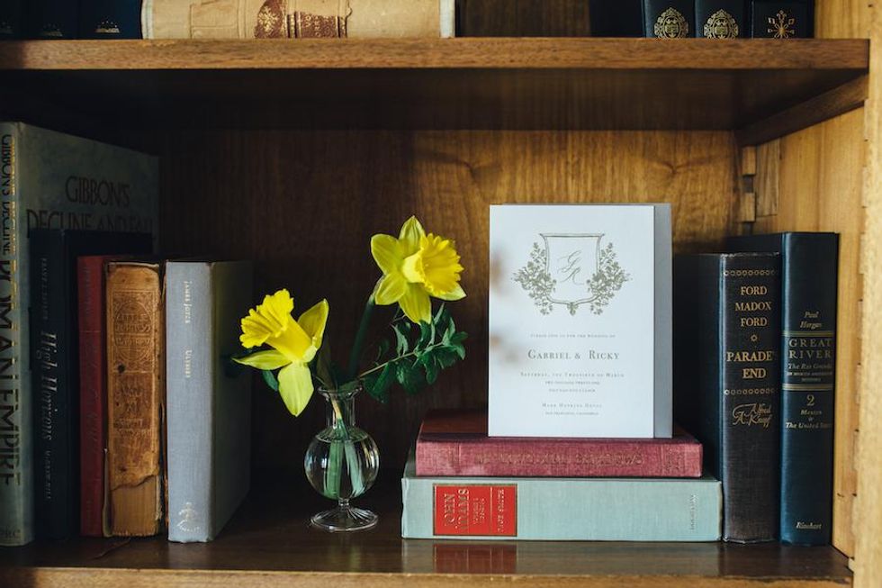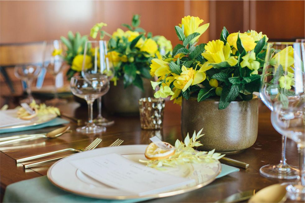 Of course, much of the wedding magic is in the details, and the Mark Hopkins offers turnkey service with the help of acclaimed local artisans, photographers, florists, and more. Here vibrant yellow florals with hints of mint leaves (taking a sunny note from Pantone's vibrant yellow color of the year, Illuminating) were designed by Verde SF. A macaron tower created by Artisan Macaron added a sense of fun and whimsy to the rich, historic space. Craft cocktails using hand-squeezed lemonade from Gourmonade set a fresh, light tone for the celebration.