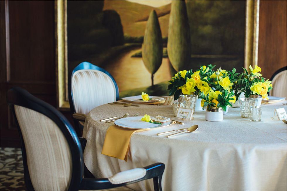 When it comes time to dine, guests will be seated at thoughtfully set tables with classic flatware and traditional silver Mark Hopkins base plates, with the option of name cards penned in classic calligraphy script. Dinner, made with locally sourced ingredients, is curated and prepared by Mark Hopkins' executive chef Chad Bayless.