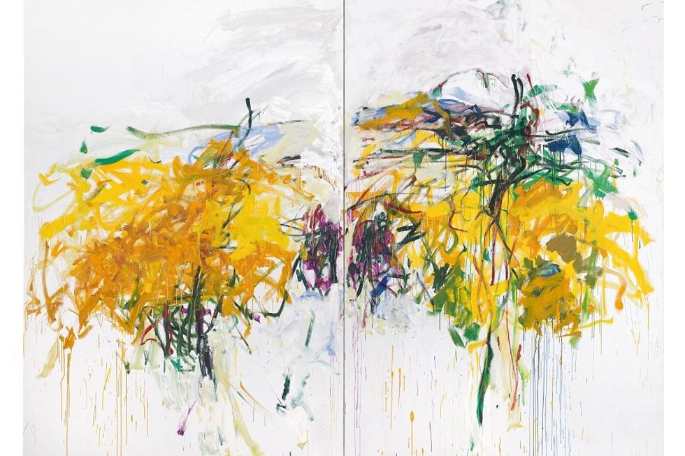 Shah’s favorite works in the exhibition include Joan Mitchell’s 1992 Untitled. One of the artist’s final diptychs, it “evokes pared-down versions of the sunflower form, and is truly one of her most outstanding paintings,” she explains. Crisscross, which comes from a 2021 series of paired paintings by Sarah Sze which explores ideas of repetition, mirror imagery, and continual cross-pollination is another work she’s especially excited for BAMPFA visitors to encounter.