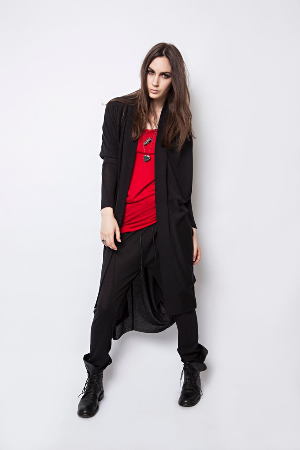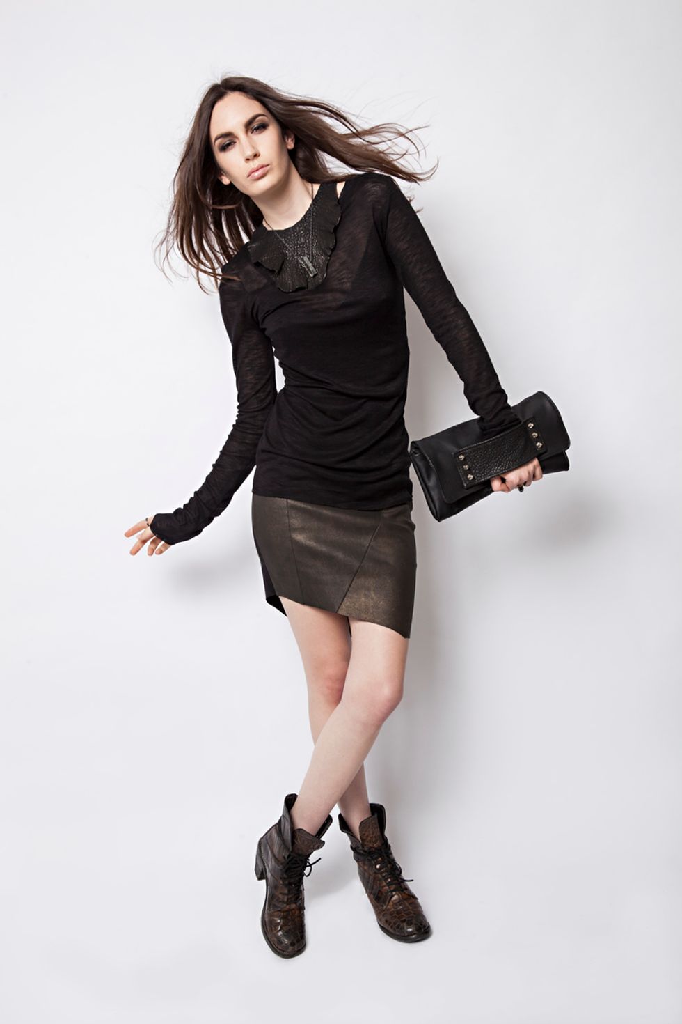 We can't help but agree; With a primarily black color palette featuring hints of blood red, gold, and stone white, the Defiant collection combines the softness of silks and wools with edgier materials like leather, metal, and denim. Each piece transition seamlessly from workwear to cocktail hour for a comfy-chic outfit you can wear all day.