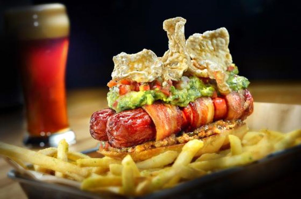 Smokin' Double Barrel Wagyu Dog at Michael Mina's Bourbon Pub.