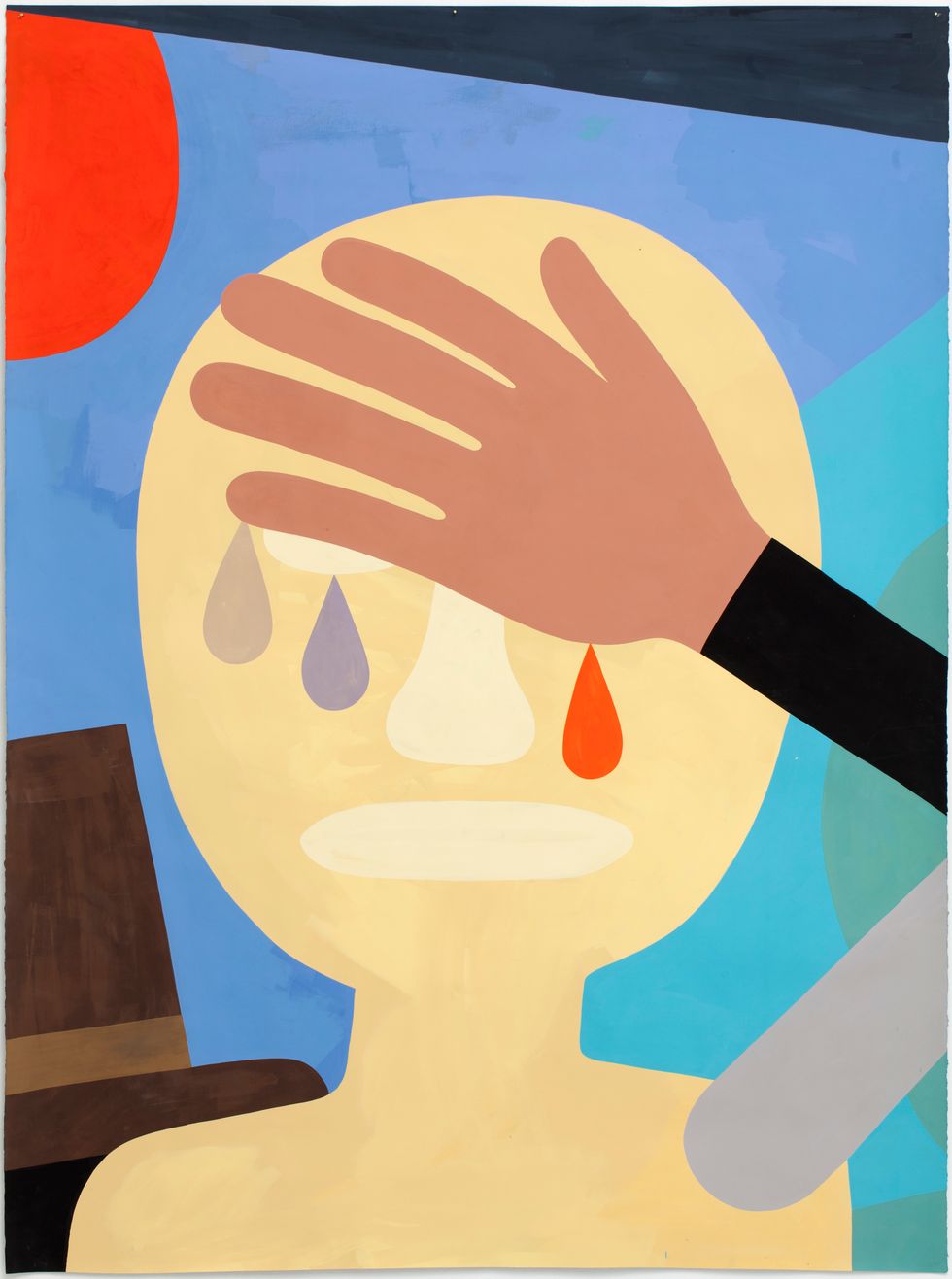 Jason Jägel is known for his layered compositions, and chaotic, colorful works, densely populated with sketches of people and places. This exhibit, his first with Gallery 16, features his familiar style as well as works that play with large-scale imagery and space, works that are flat, simplistic, but expressive.