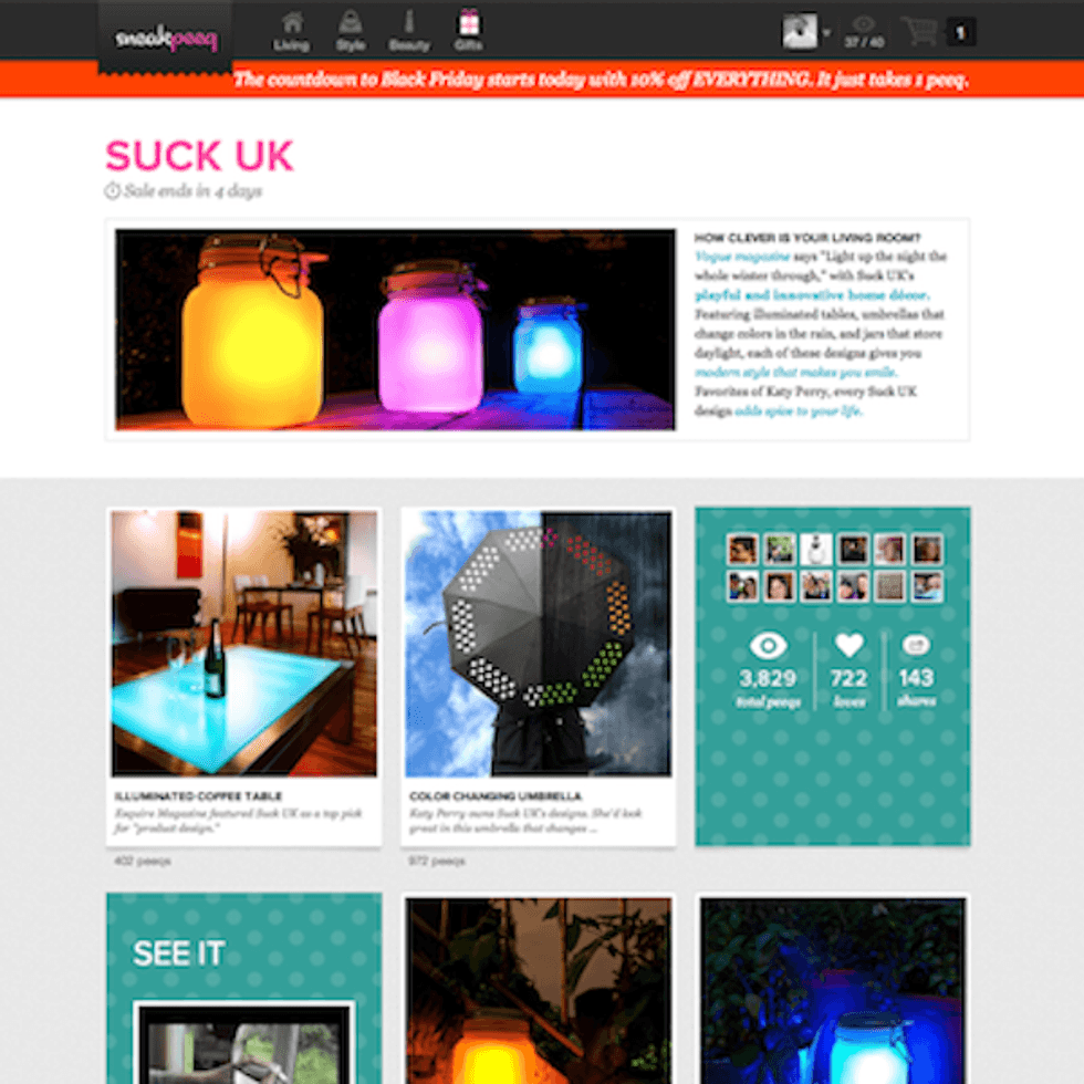 Sneakpeeq is a social shopping marketplace, both on the web and the iPad, that showcases some 4,000 indie brands in home, living and style products.